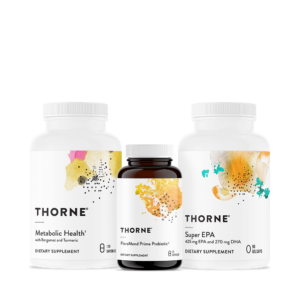 Thorne’s Weight Management Stack contains three science-backed supplements that help maintain a healthy weight and promote optimal metabolism – Metabolic Health, Super EPA, and FloraMend Prime Probiotic®.